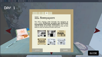 You will receive news through the mailbox to your right. Take a good look at them on the desk provided to you, as you must be able to discern truth and lies.